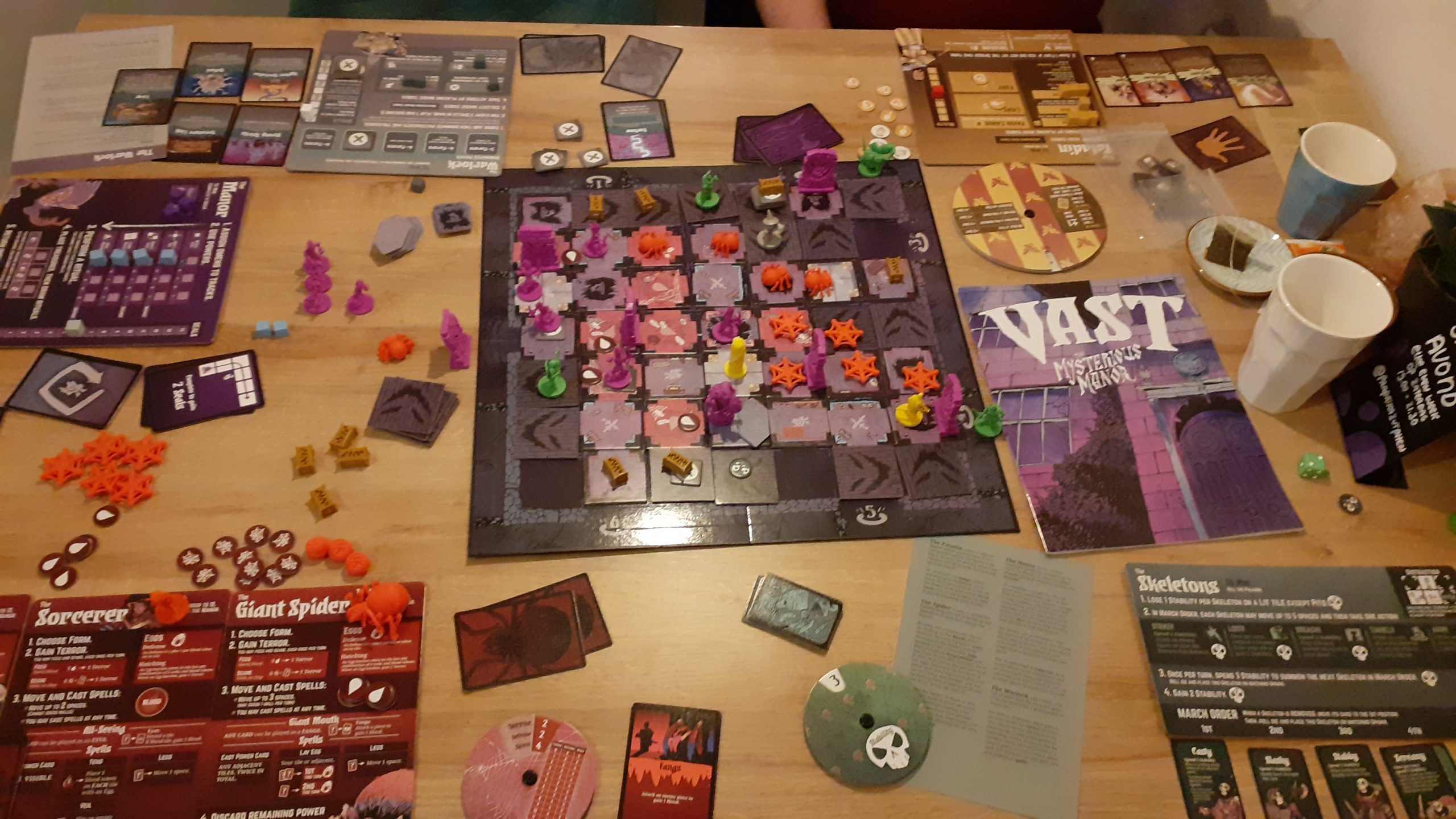 Het andere nadeel is dat Vast: The Mysterious Manor lang is. En dan vooral de lengte van beurten. Als een speler aan de beurt is kan die allemaal coole dingen doen, wat fantastisch is! Maar als je niet aan de beurt bent betekent dat juist dat je erg lang moet wachten voor het spel verder gaat. Hier komt bovenop dat je deze tijd niet kan minimaliseren door vooruit te denken, omdat het bord er na elke ronde totaal anders uit kan zien. Persoonlijk stoorden wij ons hier niet zo aan, omdat we het interessant vonden om te kijken wat onze tegenstanders allemaal (kunnen) doen. Maar het is wel iets om in het achterhoofd te houden voor je het spel aanschaft.