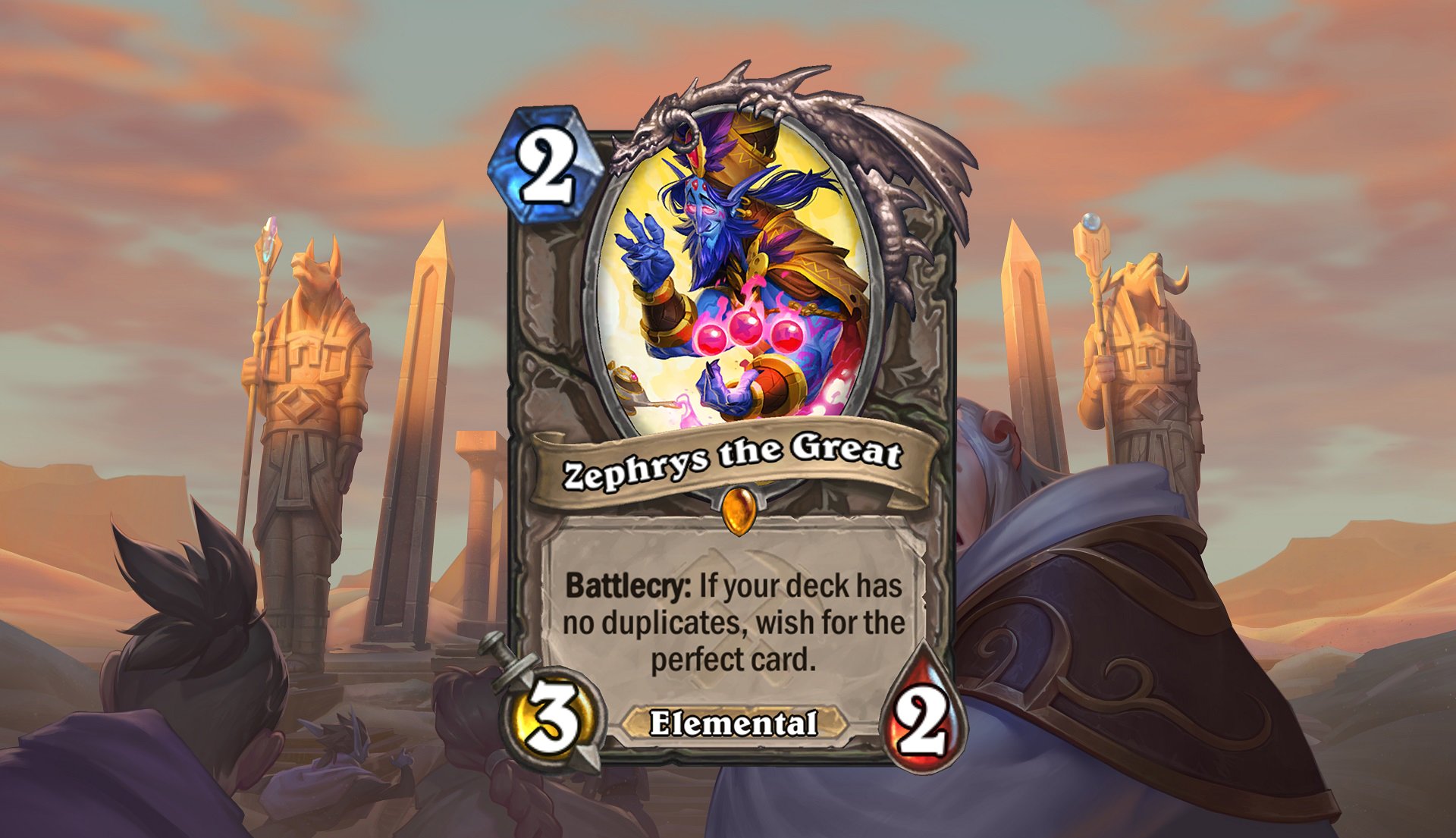 Nieuwe ervaringen zijn er niet alleen maar in de vorm van uitbreiding en een nieuwe modus, maar sommige kaarten kunnen alleenstaand al zo bijzonder zijn dat ze een hele nieuwe draai aan het spel geven. Onze favoriete kaart, en die van velen, is Zephrys the Great, hij laat je namelijk wensen voor de perfecte kaart. Afhankelijk van wat voor kaarten jij hebt, je tegenstander heeft en hoeveel mana je overhebt, laat hij je kiezen uit drie verschillende kaarten. Op het eerste gezicht lijkt dit volledig willekeurig, maar naarmate je meer over Zephrys leert, kom je erachter dat je de omstandigheden precies kan manipuleren om inderdaad die perfecte kaart te krijgen die je wilt. Maar met het systeem van Hearthstone verdwijnen kaarten uit de roulatie na twee jaar om plaats te maken voor nieuwe kaarten. We vroegen Chadd of in dit specifieke geval dat toch niet erg jammer is.